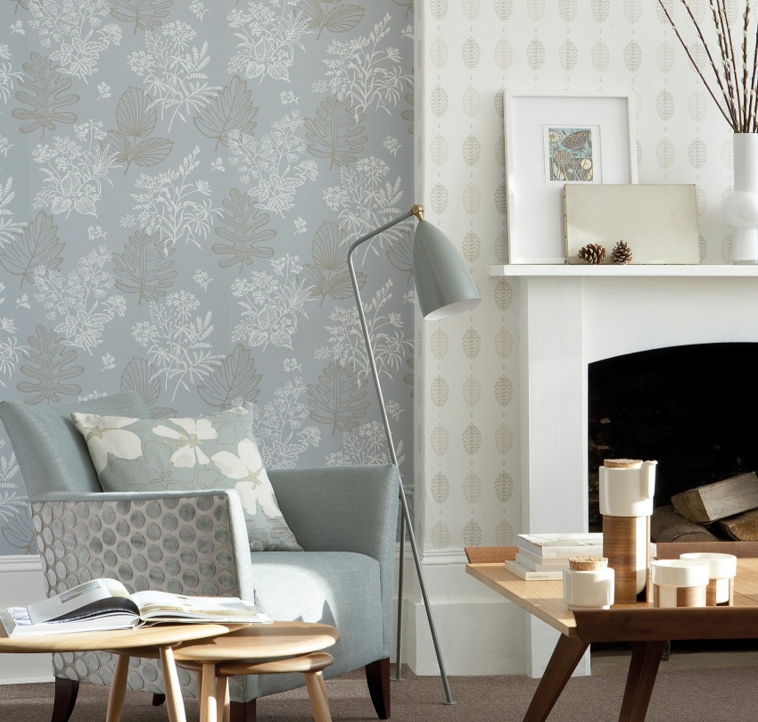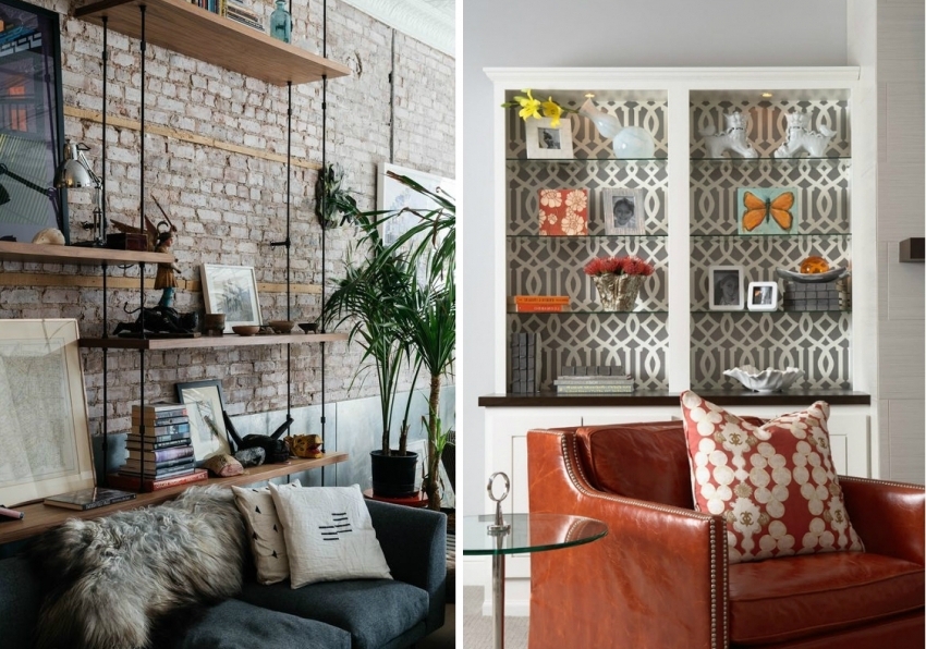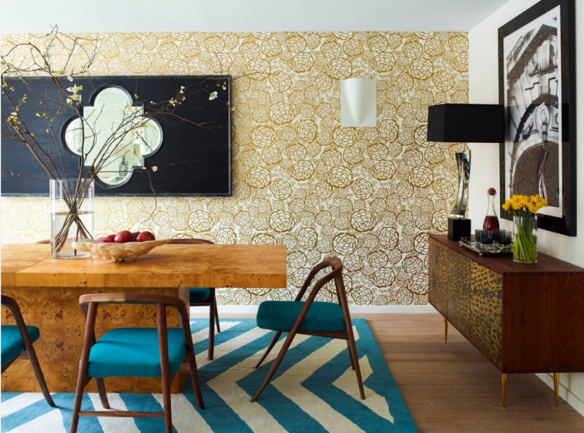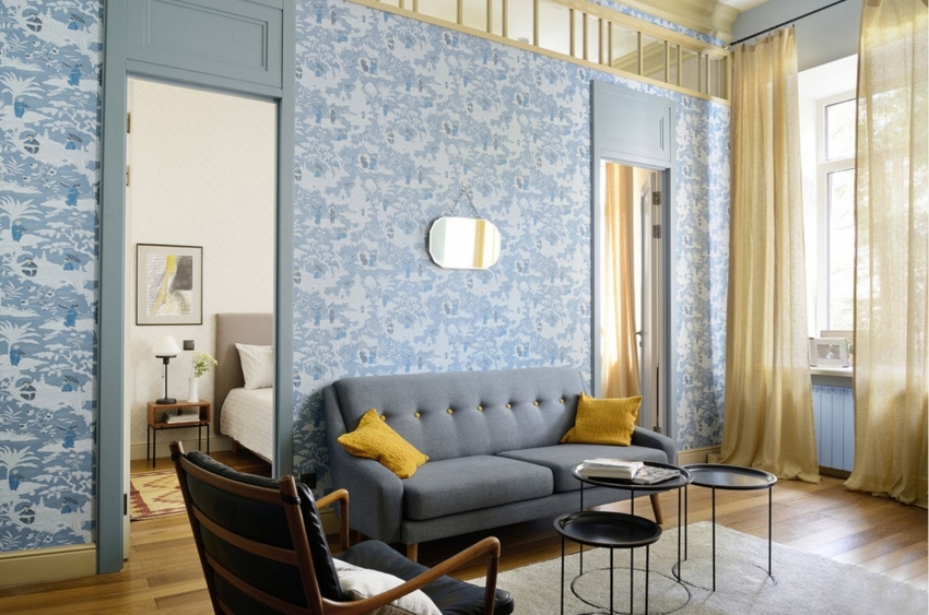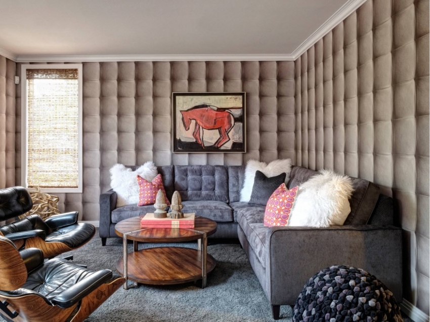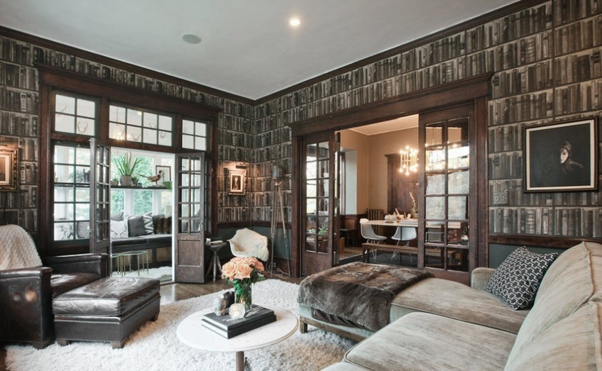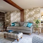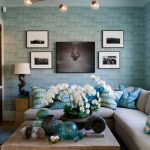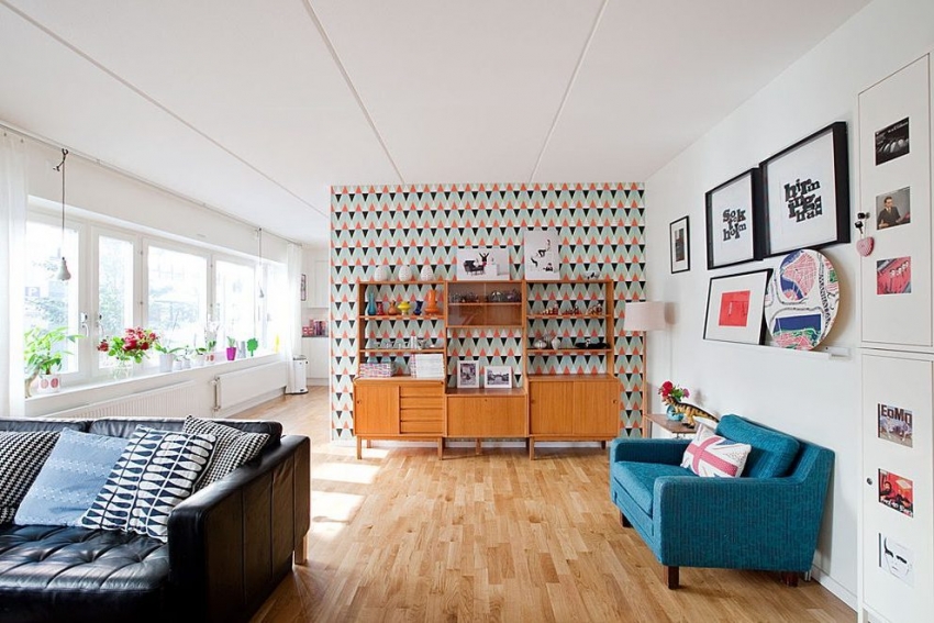 With the help of wallpaper, you can visually highlight and focus on a certain area of the living room