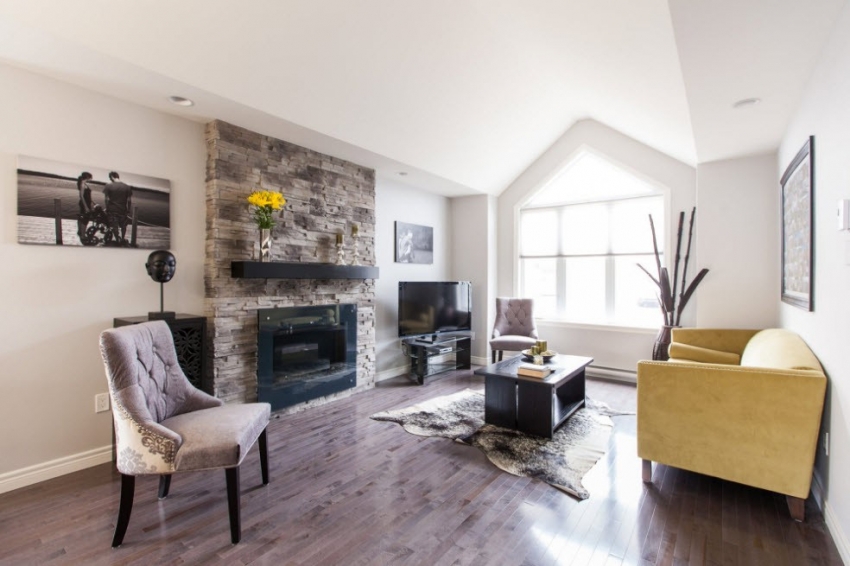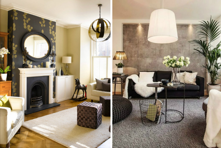 If living room furniture has a rich shade, and the floor is made in a dark color, for the walls you need to choose a light finish. Thanks to this, it will be possible to lighten the interior. Dark floors visually lower the level of ceilings. To correct this negative effect, wallpaper with stripes or patterns placed vertically can be glued to the walls.