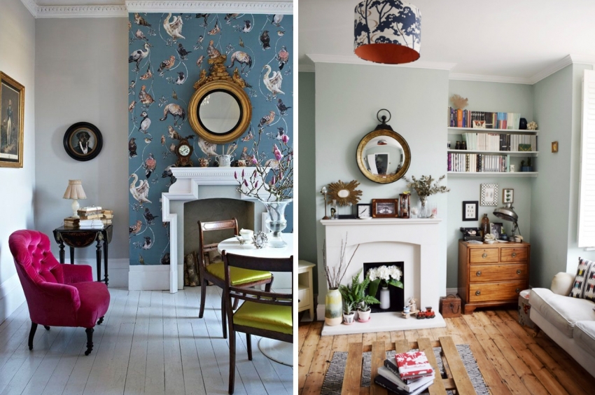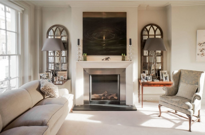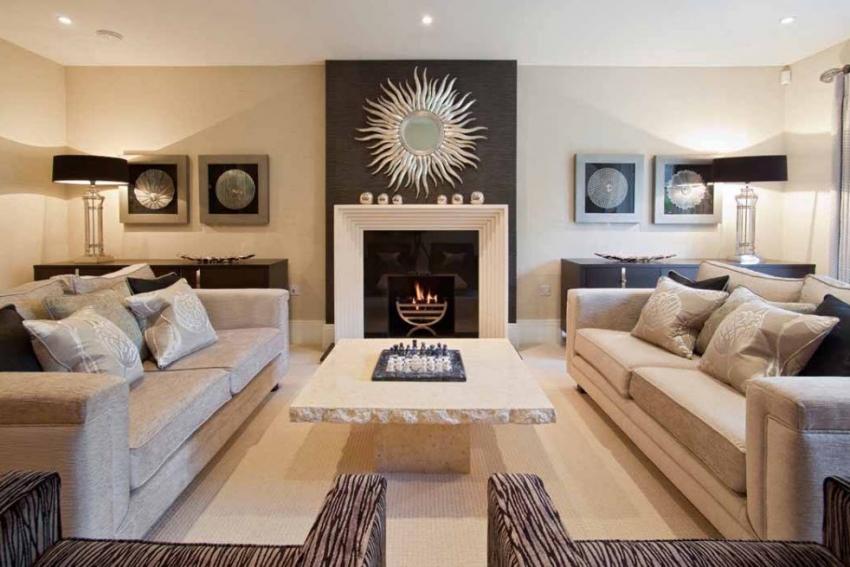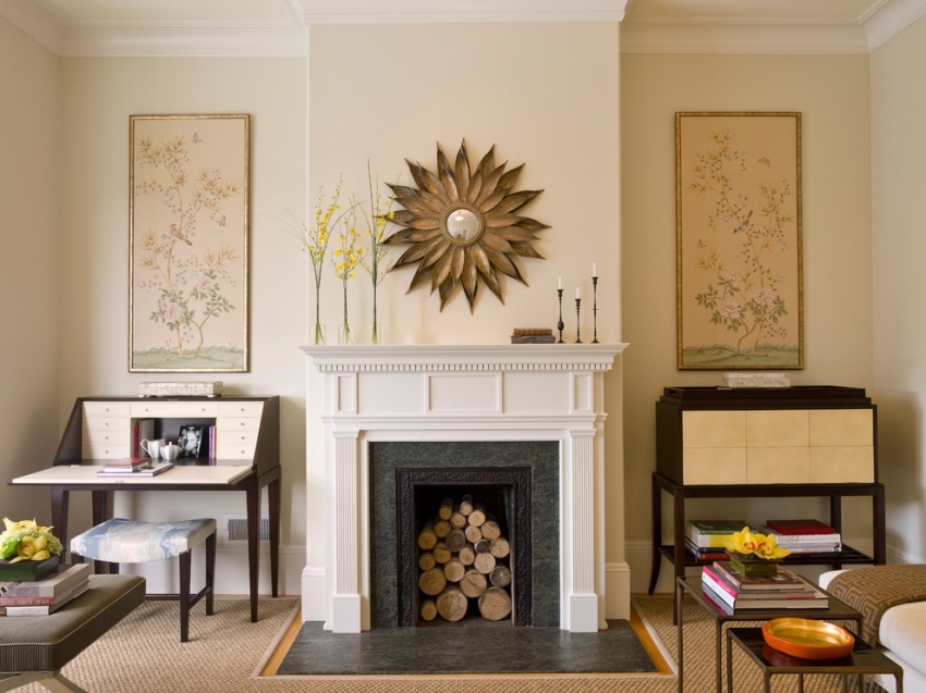 Family photos, mirrors and paintings are suitable as a decor for a living room in a classic style.