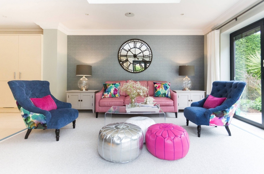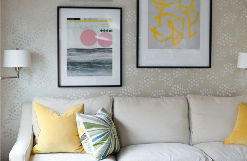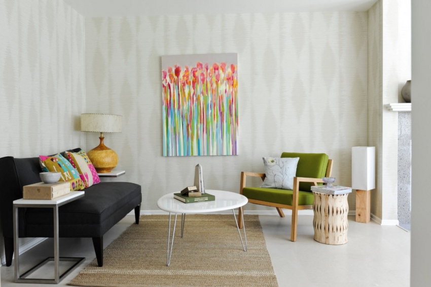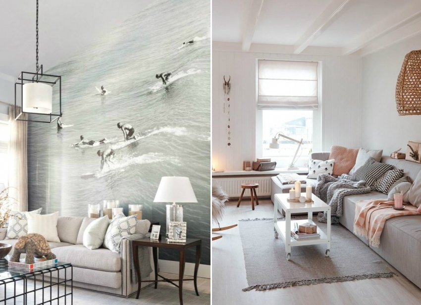 When choosing wallpaper in neutral shades, the interior should be diversified with colored details and furniture.