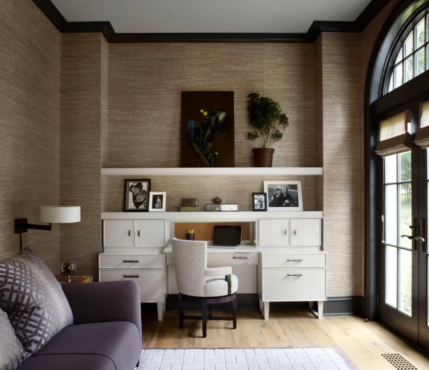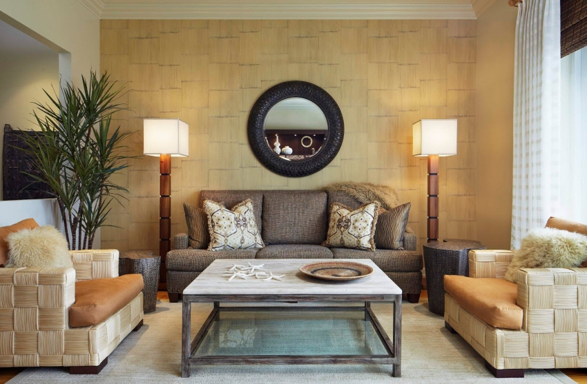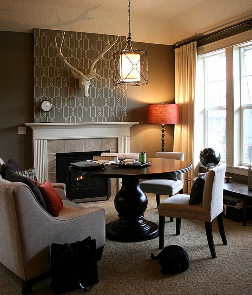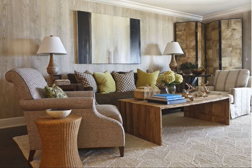 Both brown and beige wallpapers look great in combination with other shades. The ideal option would be to add white to your living room design.