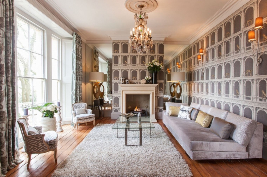 - 2.2 The choice of wallpaper for the living room: a photo of modern ideas of 2017 for an interior in modern style