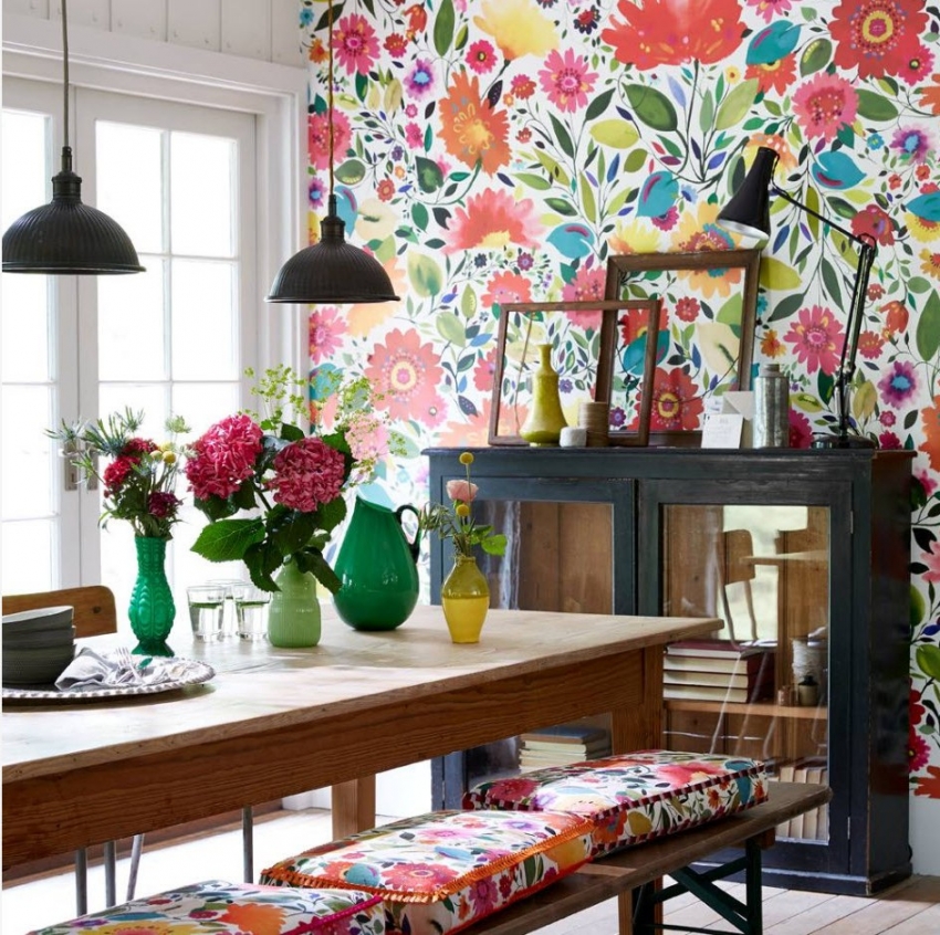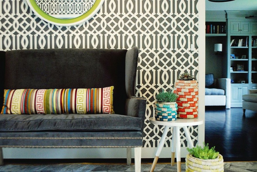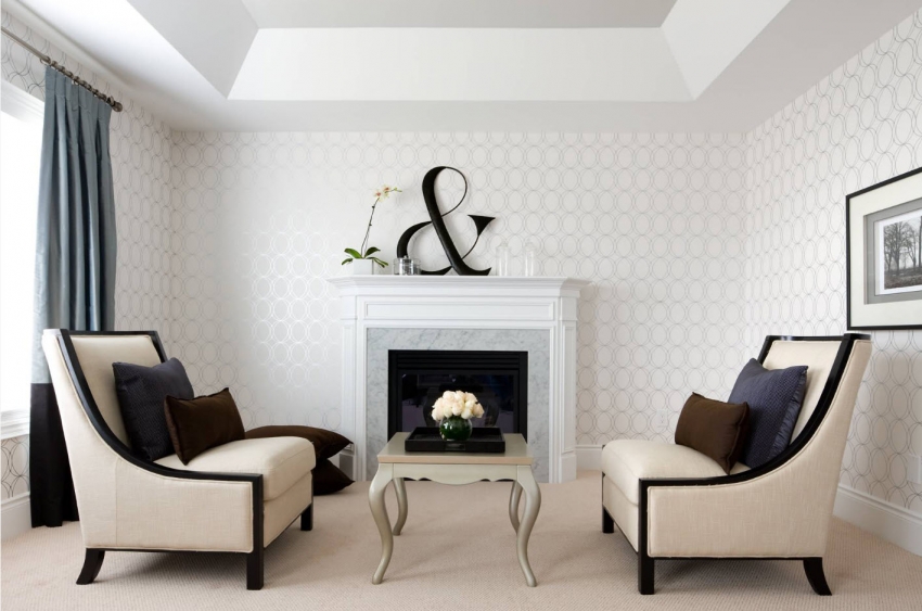White walls can be correctly beaten by using wallpaper with a pattern to decorate one of the areas of the room