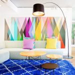 The design of the wallpaper in the living room in the form of a mosaic looks very elegant and expressive in the photo. Combinations of patterns, shapes or colors in one composition will add uniqueness and originality to the interior. The use of wallpaper with polka dots and coverings with a pattern in the form of circles is allowed. Also, we must not forget that modern style is closely related to art, so the presence of modern paintings, installations and unusual furniture in the room setting will not hurt.