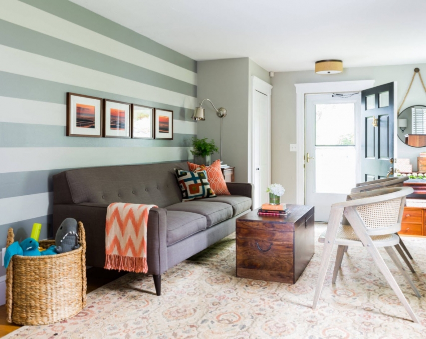 Striped wallpaper can make the ceiling both higher and lower, so you should pay attention to the size of the room before opting for such a finish.