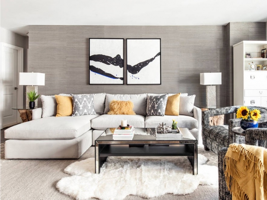 Among apartment owners, the use of yellow wallpaper in the living room is relevant, the photos of the interiors of 2017 display various variations of this shade: starting with bright yellow, ending with mustard.
