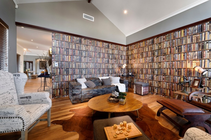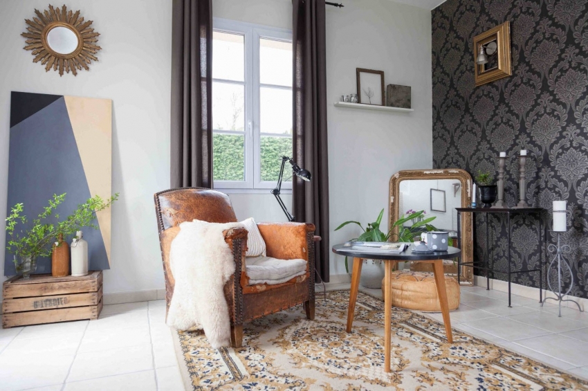 The presence of bright lamps, paintings and accessories will dilute the brown interior.