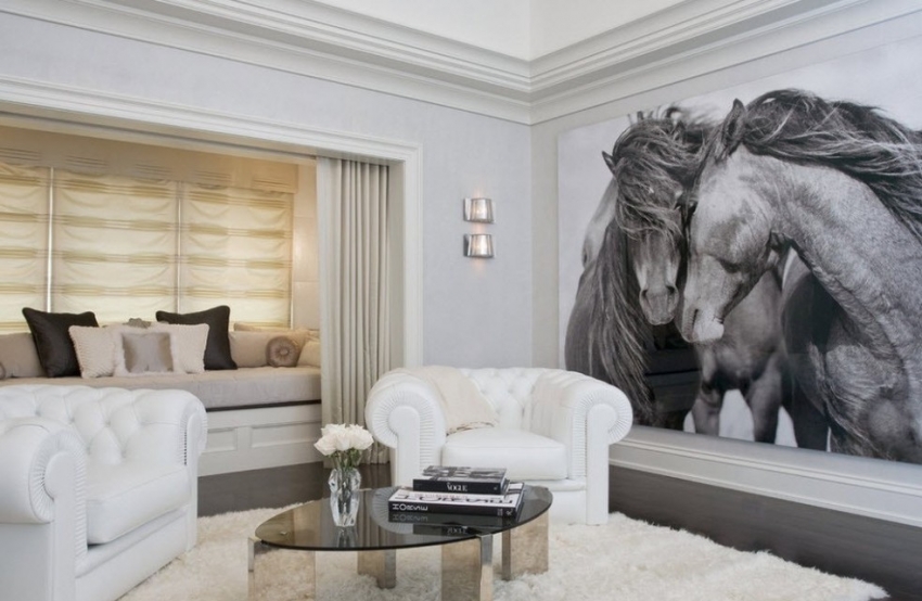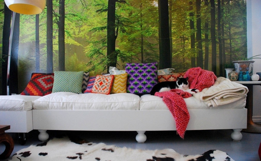The canvases of photo wallpaper on the walls also look attractive, the price of a 3D coating varies in the range from 1000 to 2500 rubles. for 1 m², so these products cannot be classified as budget materials.