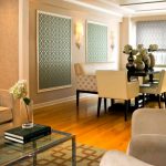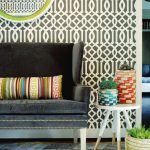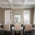 It will not hurt to use gilded trim. Photos of modern wallpaper for the hall of 2017, decorated with stencil drawings, look very colorful. Patterns can be purchased at a hardware store. Working with stencils is very easy. Monochrome wallpaper canvases are selected as a basis. Drawings can cover the entire perimeter of the room or be present in certain areas as an accent.
