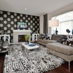 In the photo of fashionable wallpapers for the living room in 2017, you can see very realistic imitations of these materials, which organically fit into this direction. The main thing is not to overdo it with lines and shapes, which should remain smooth and natural. For modern style canvases decorated with plant motifs and patterns from the animal kingdom are also suitable. The best option would be black and white wallpaper, as well as finishing in monochrome colors with gold elements.