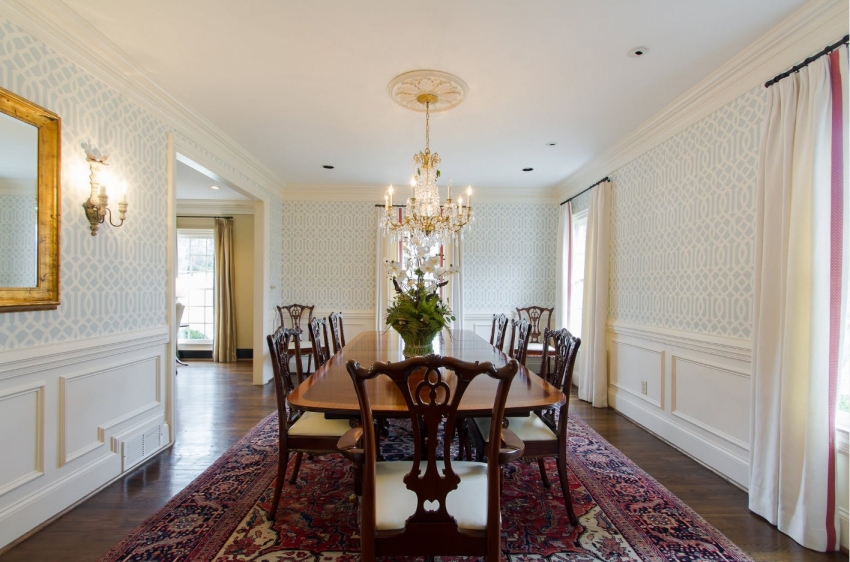 - for the classical style, patterns of warm and light shades are considered optimal, as well as patterns with gilding;