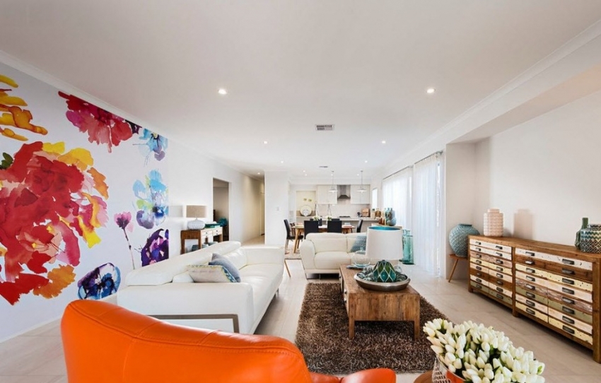 Living rooms with light colored floors impose virtually no restrictions on the use of finishes. In this case, you can use bright and dark wallpaper, plain or decorated with drawings canvases. Wall colors also have an impact on the perception of the interior.
