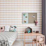 A universal option is geometric shapes, as well as images of representatives of fauna and flora. The design of striped wallpaper for walls in the interior of a nursery is ideal for both boys and girls.