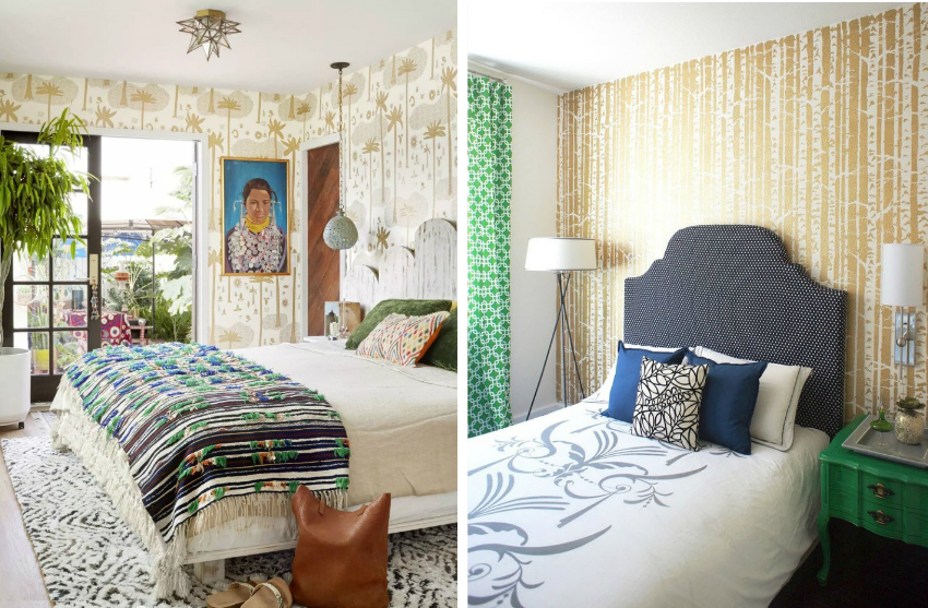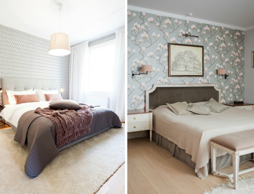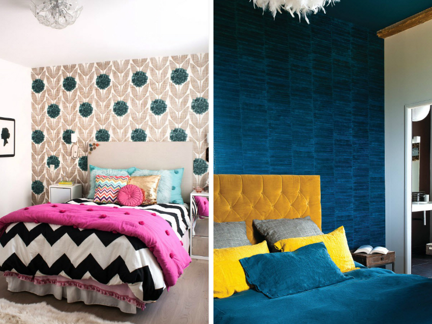 How to combine wallpaper with each other: photos of bedrooms with unusual finishes