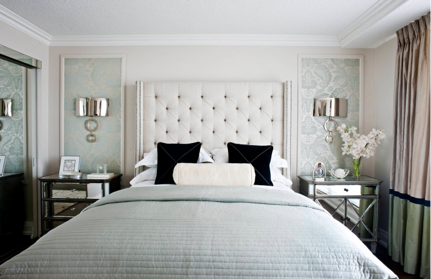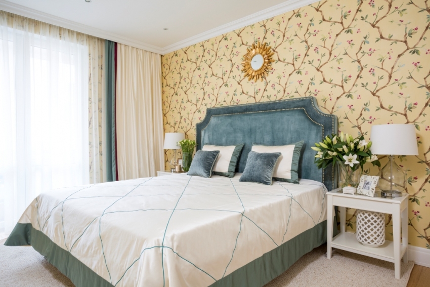 The classic approach to bedroom interior design is to use warm and soothing colors, but the method of combining wallpaper is in great demand today.