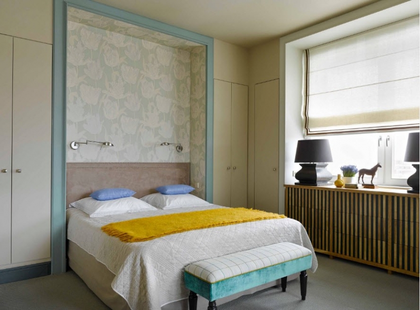 Such wallpapers can be decorated in the form of a panel, or the walls can be supplemented with original insert patterns. If there is a niche in the bedroom, combined wallpaper in the bedroom, the photos clearly confirm this, will be the ideal solution. The main thing is that the niche is not loaded with furniture. To place an accent in this area, you will need to use rich and bright colors, or, conversely, rely on light wallpapers. In this case, the remaining surfaces should be decorated in a contrasting color scheme.