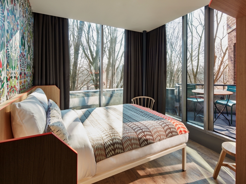 The interiors of the recreation areas in a modern style go well with the photo wallpaper made in gray colors. In this case, there will be two types of wallpapers in the bedroom: a photo-painting with a realistic image on one of the walls and a plain finish on other surfaces of the room.