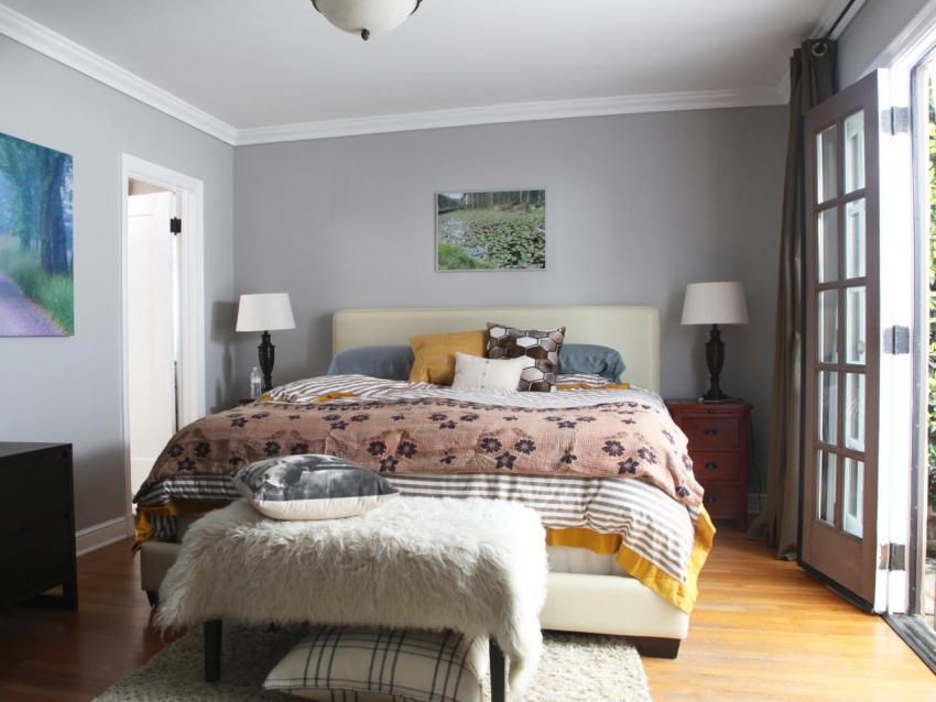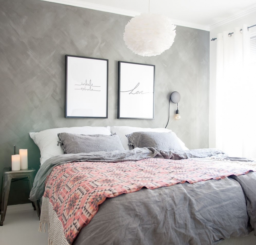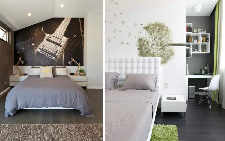 If you still want to use a light gray color scheme and at the same time not damage the quality of the design, you can stick two types of wallpaper in the bedroom, photos of such solutions look very impressive.