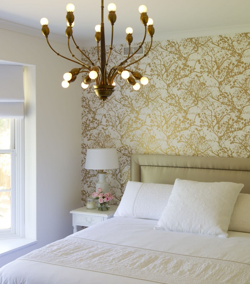 The choice of gold wallpaper for the bedroom: photos, modern ideas of 2017