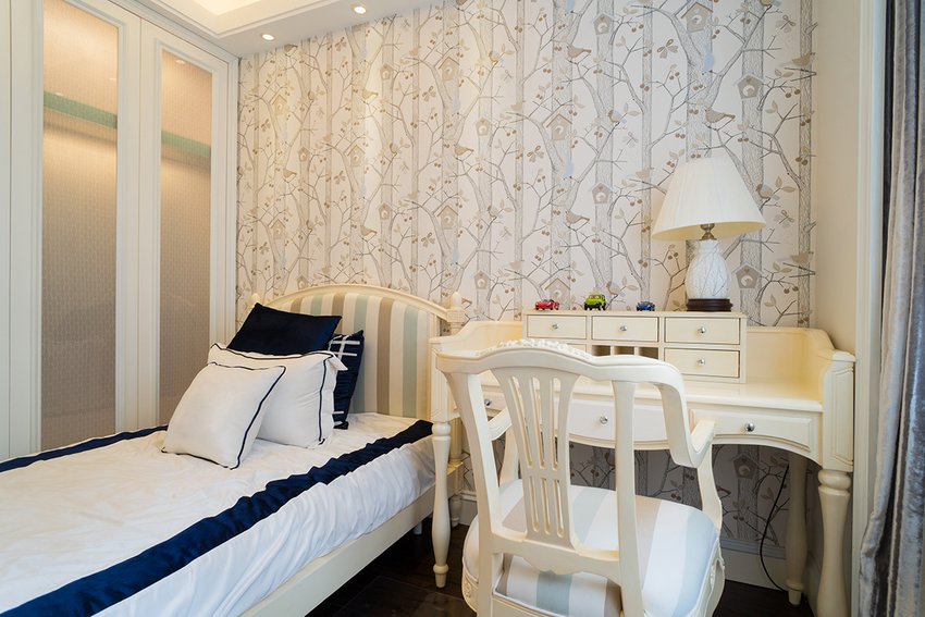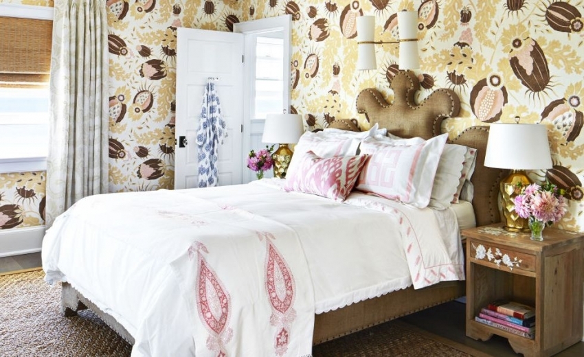 When decorating a small bedroom, it is important to consider that wallpaper with a repeating small pattern can visually make the room smaller.