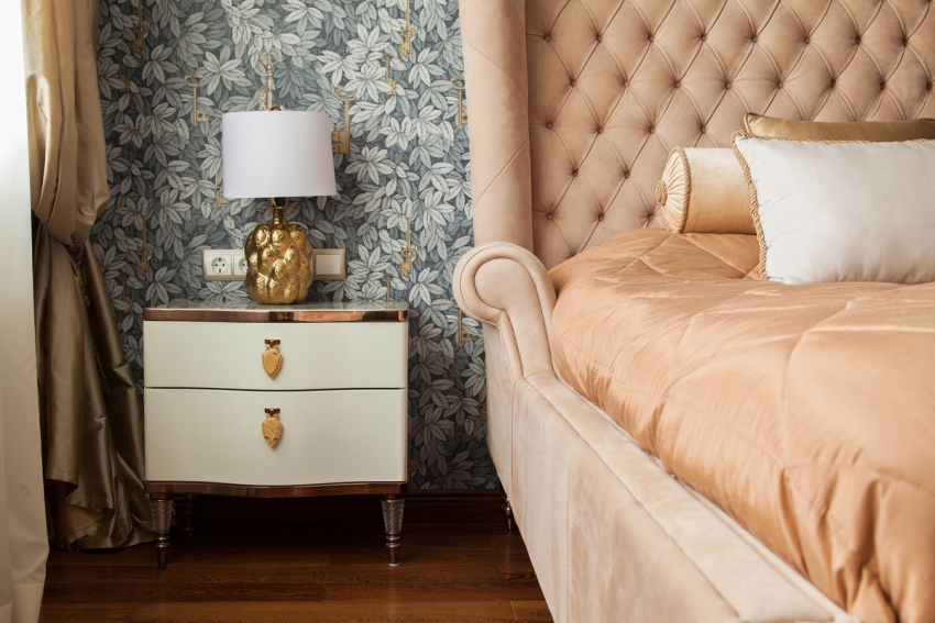 Helpful advice! For a bedroom in gold, a modern style is suitable, which can be created on the basis of wallpaper with an abstract or floral pattern, as well as baroque in a classic design.