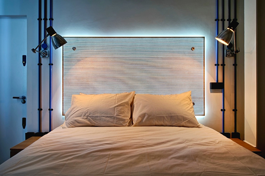 Useful advice! Lamps should be placed taking into account the interior design. The classic arrangement is to mount the light just above the bed. In this position, a soft and pleasant light will be emitted above the bed, in which you can read without being distracted from good rest.