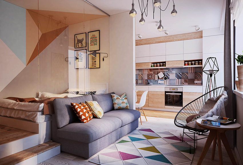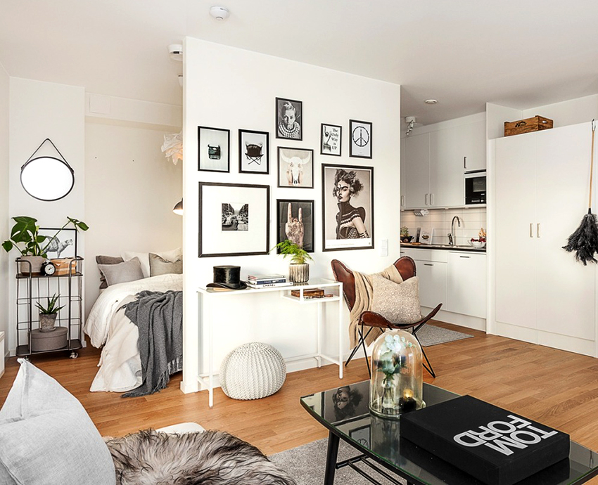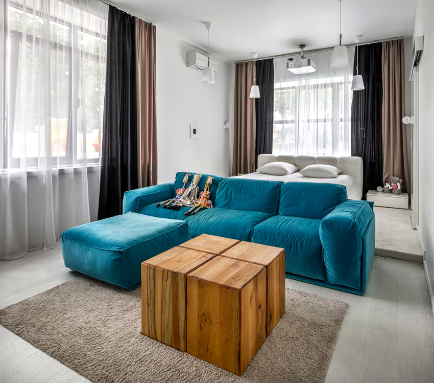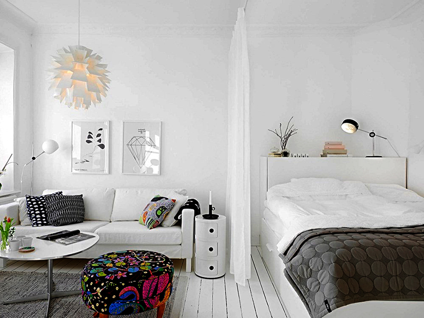 Not everyone has the opportunity to purchase spacious housing in several rooms, where each family member has a personal space and place. Therefore, small-sized one- or two-room apartments require competent planning, which will allow one room to realize several functions, for example, to play the role of a living room combined with a bedroom.