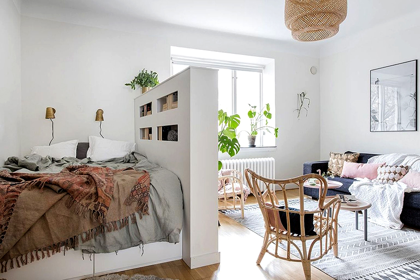 - 1 Zoning a room into a bedroom and a living room: features of the division of space