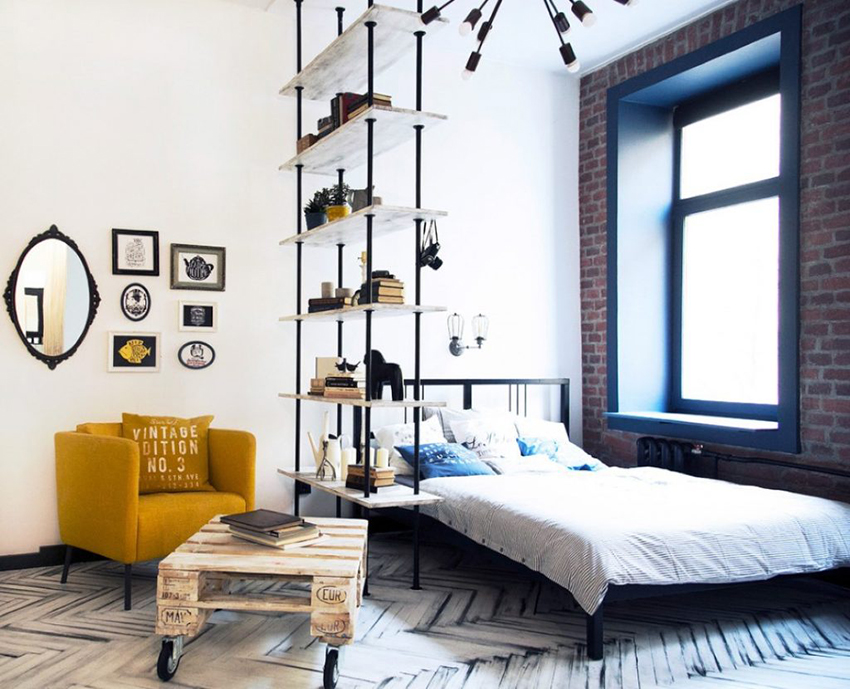 In addition, such a partition is easy to create with your own hands, following step-by-step instructions. If the need arises, the screen can be folded and hidden in the closet. Such structures are often called false partitions, since they divide the space, but do not separate the zones from each other. Most often, this design is inherent in loft style... For example, we present to your attention a photo of the design of the living room bedroom using static partitions.