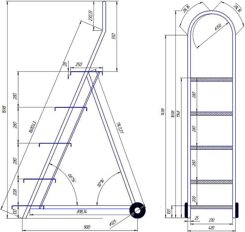 Thanks to the above recommendations, you can easily independently calculate the dimensions of the structure and understand the technology of its manufacture, regardless of the degree of complexity of the step-ladder drawing made of wood with your own hands.