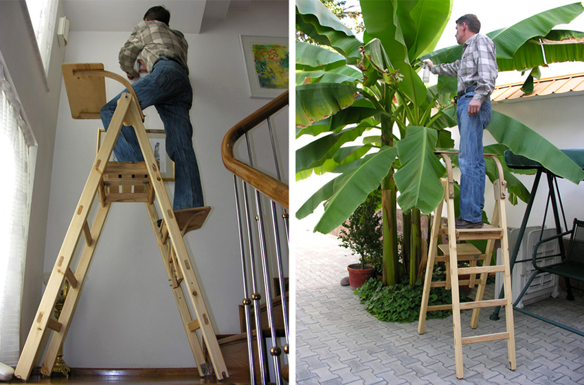 It is interesting! The wooden transforming chair differs from the stepladder in that to use the steps, you will need to turn the product over, more precisely, set one half of it to the opposite one.