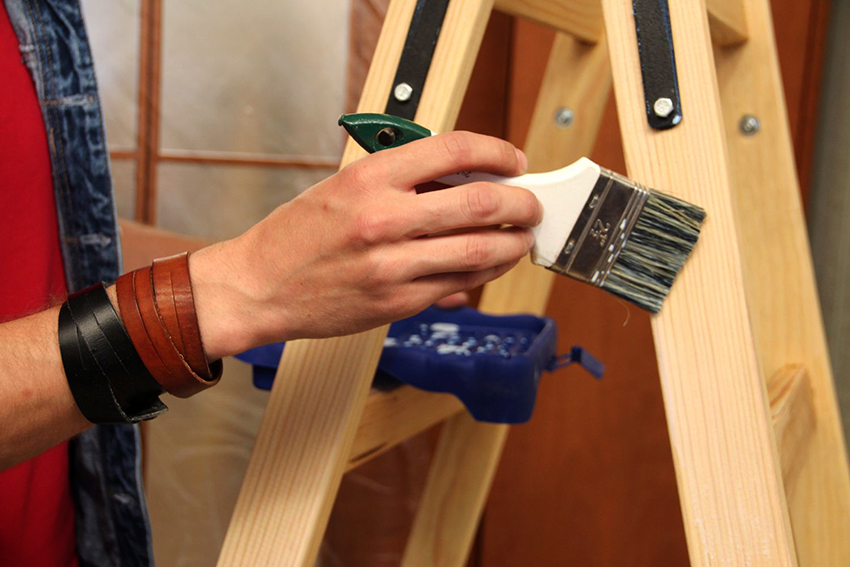 To make the wooden stepladder stool resistant to external influences, the product should be impregnated with a special compound - stain. This tool acts as an antiseptic, prevents rotting, as well as the appearance of mold on the surface of the wood.