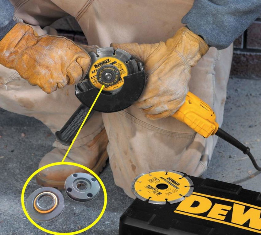 If it is necessary to clean the inner cavity of the grinder's casing, unscrew the lower flange. Dirt is removed with a steel brush. The bottom flange is put in place so that the grooves on the flange and spindle are aligned. A sealing gasket is put on top, which will further provide easy unscrewing of the clamping nut. The new disc is installed so that the product marking is facing outward.