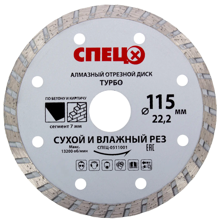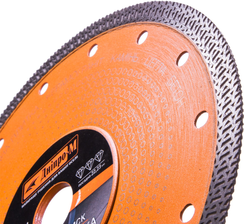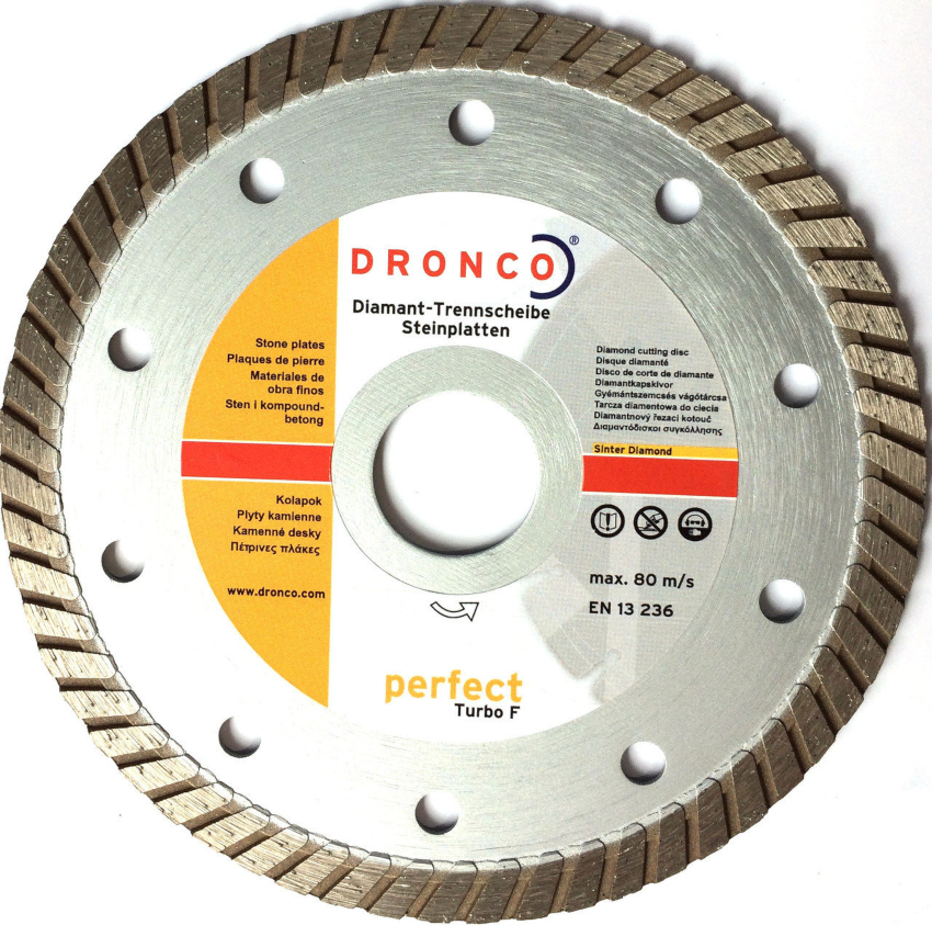 A distinctive feature of diamond turbo discs is the presence of a slanting notch on the sides of the rim, due to which the mechanical strength of the wheel increases. It also enhances the intensity of heat dissipation, which allows you to speed up the cutting process by 75-100%. The turbo disc can be used to quickly cut various mineral materials of different hardness.