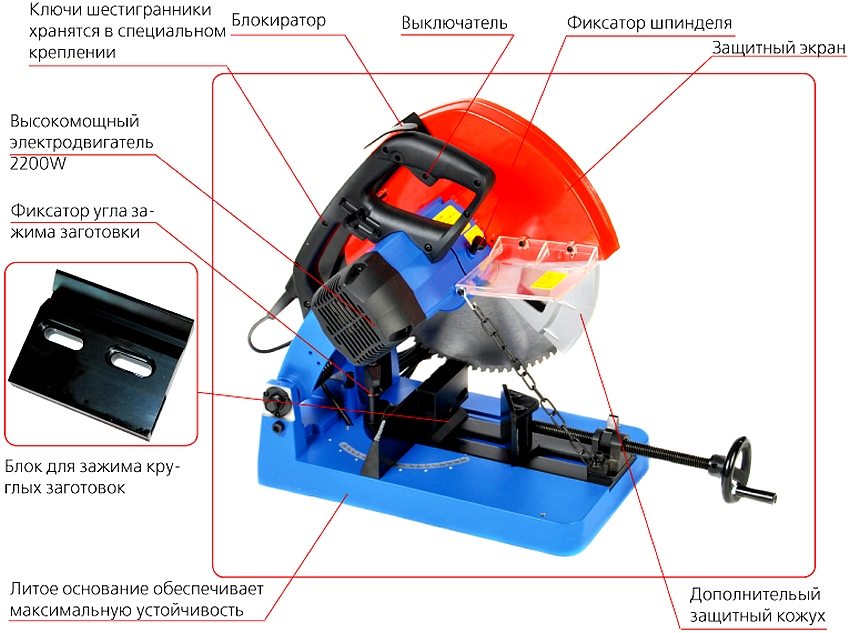 Cutting machinedesigned for metal working is a high performance electric tool. This type of equipment is used for cross-cutting of rolled metal blanks, as well as products made on the basis of metals and various alloys.