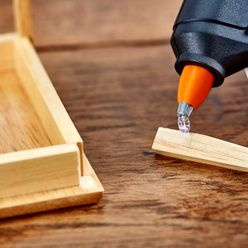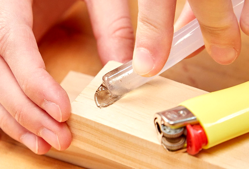 The glue used in the glue gun perfectly glues wood, plastic, glass, leather, metal, ceramics, paper, rubber, textiles