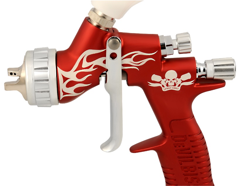 The Devilbiss FLG 5 spray gun is designed to apply all organic materials and is equipped with a universal medium pressure air head
