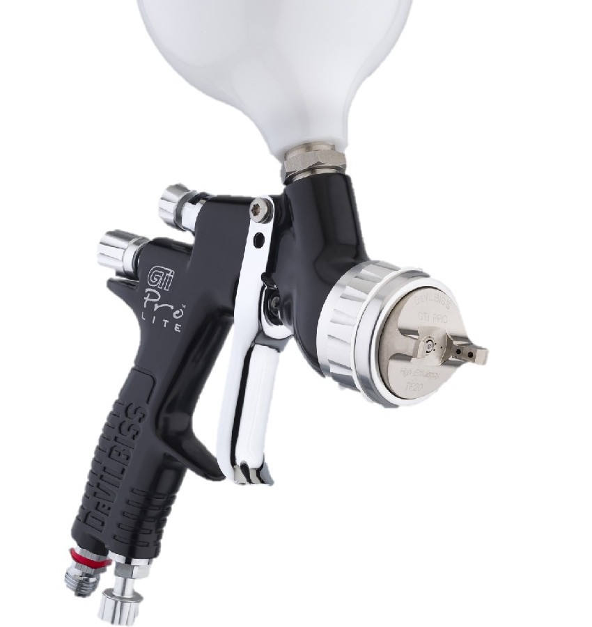 DeVilbiss paint sprayers are manufactured by a British company that stands out for the quality of its products. One of the latest developments of this brand is the GTI Pro Lite model. The weight of this device is only 446 g, which makes it compact and versatile. With this tool, you can perform long-term painting operations.