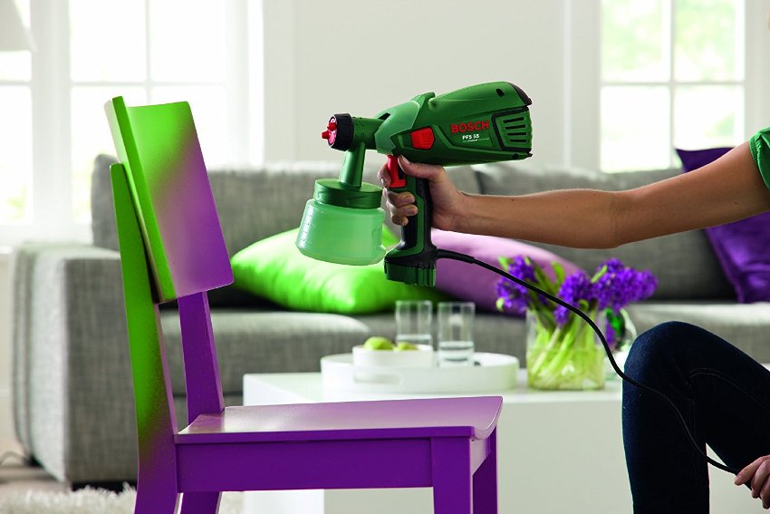 In construction, these fixtures are used to apply primer, paint and varnish.And also sprayers are used for the restoration of furniture and household electrical appliances. This is easily explained by the fact that these devices allow you to apply a high-quality paint layer that does not contain blurry or rough areas. A similar procedure performed at home is in no way inferior to the factory one.