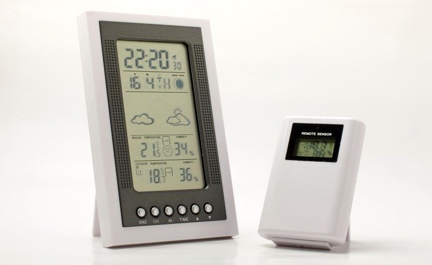 The functions of the simplest household meteorological stations include measuring the air temperature and humidity outside and inside the premises. Indoor measurements are made by a sensor hidden in the main unit of the device installed in the room. Exterior data comes from an external assembly that is attached to the window frame. For the readings to be as accurate as possible, it is advisable to install the outdoor unit on the north side.