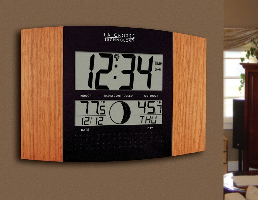 Models of wall clocks with a weather station are quite popular in home use. Devices are endowed with the functions of displaying temperature, humidity, pressure in the room, many have a luminescent backlight of the dial and hands. Their attractive design and ease of use make them the leader in home weather stations.
