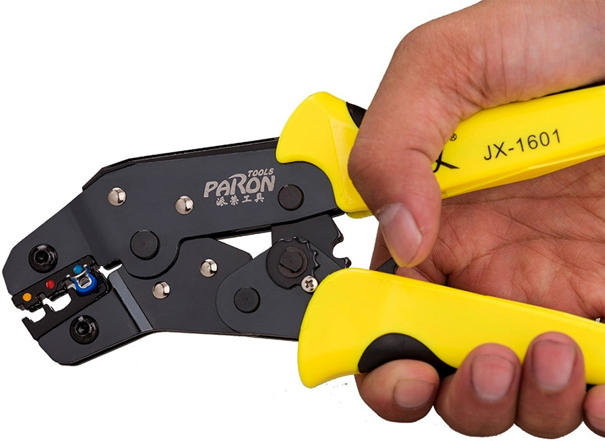 - Crimping with pliers is carried out until the ratchet mechanism is connected, which locks the tool, preventing it from being released.