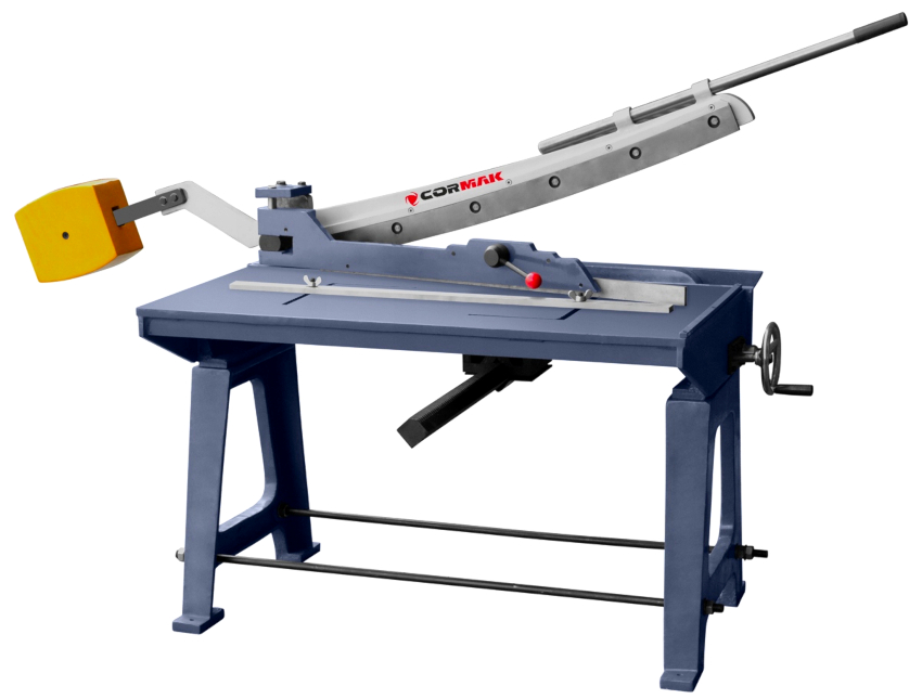 For cutting rough sheet metal, you can use the tabletop mechanism, which makes a clean cut without burrs. It is used for processing square and round rods, with its help, angular cuts and T-shapes are produced.