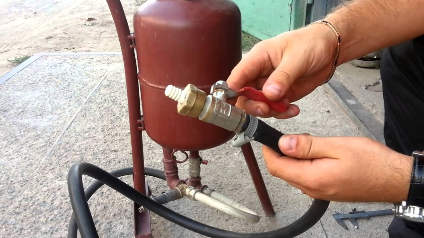 Before making sandblasting, you should take care of the availability of the necessary parts, most of which can always be found in your garage, pantry or workshop. Missing items should be looked for at flea markets or in hardware stores. One of the important components is the tank, from where the abrasive sand will be fed into the pipeline. Most of the craftsmen prefer to use an old gas cylinder for this purpose.