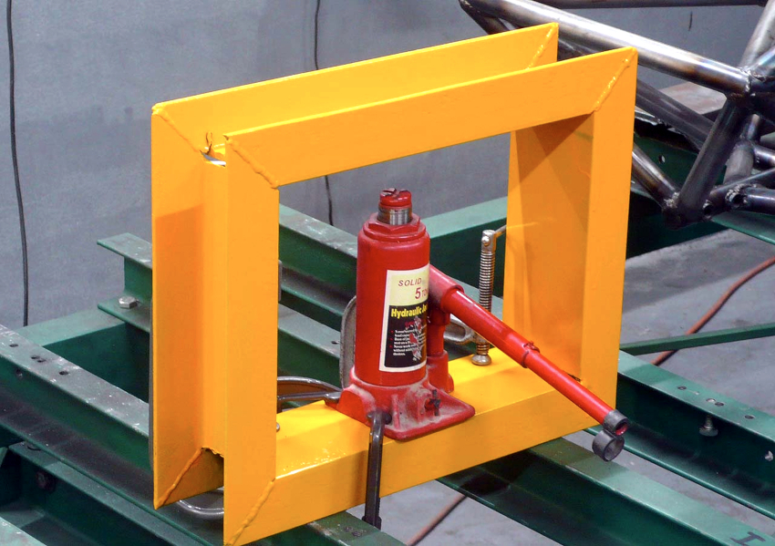 The height of the side posts must correspond to the sum of the thickness of the workpiece, the height of the jack itself and the length of its rod