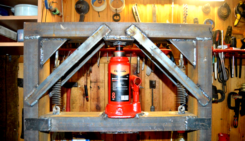 Most often, a homemade press is made from a hydraulic jack. This is due to the design features of the product and the principle of its operation, which is based on the laws of hydraulics.