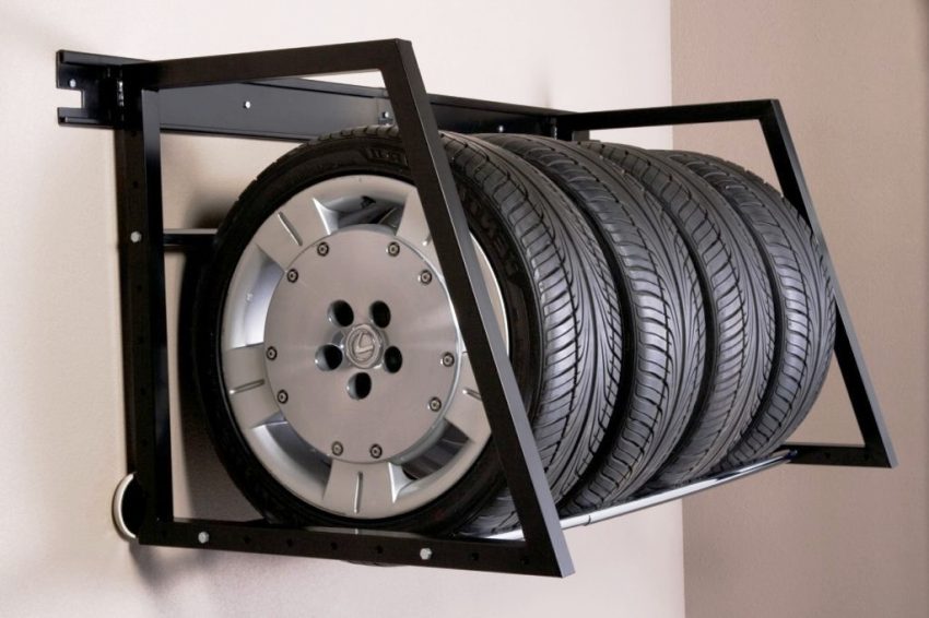 The most bulky spare parts of a vehicle are sets of rubber, which can be winter or summer. When a winter version is used, summer tires are usually stored in the garage and vice versa. Therefore, you should organize shelves for storing tires or brackets.