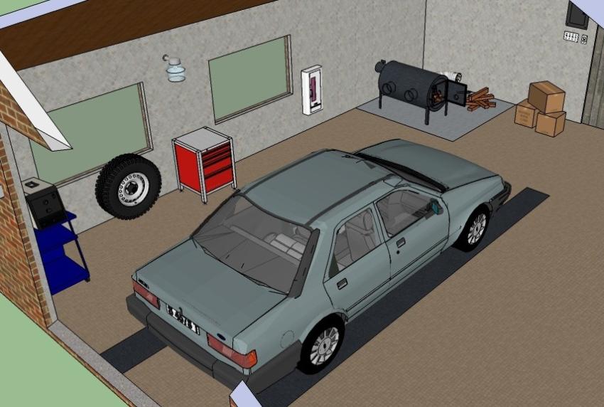 About 80% of the shelves in the garage are self-constructed for storing garage accessories, namely: