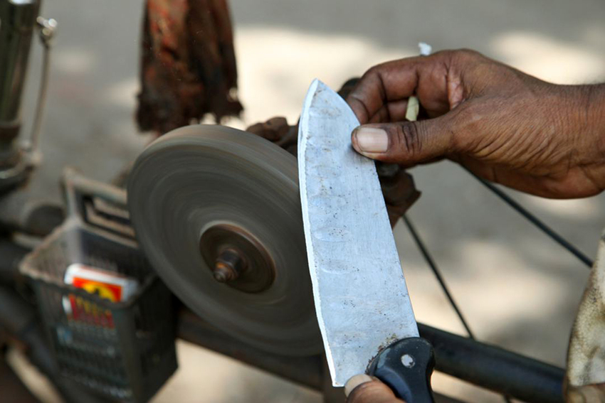It is necessary to ensure that the angle between the knife and the bar is the same during the sharpening process