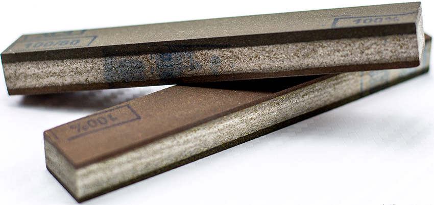 Because the full sharpening cycle consists of several stages, it is recommended to immediately purchase a set of bars with different grain sizes. When using a block, you should adhere to the optimal sharpening angle for a particular device. To make it easier to keep the correct angle, it is necessary to use paper or wood clips. During the entire sharpening process, one hand holds the bar, and the other hand holds the knife blade itself. In some cases, it is easier to lock the block in one position and hold the knife with both hands. Sharpening is carried out alternately on each plane.